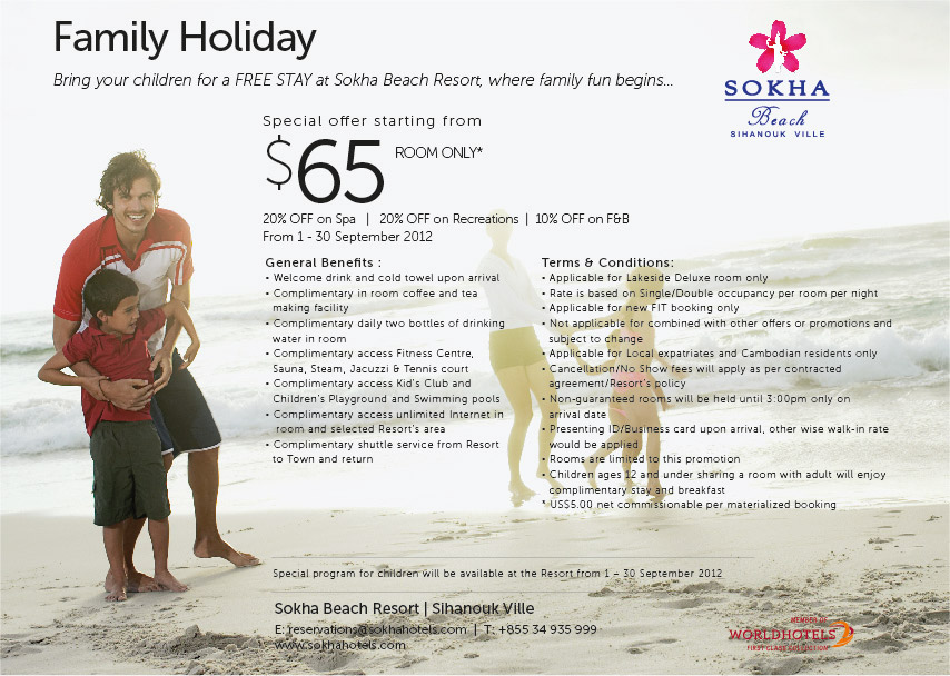 Bring your children for a FREE STAY at Sokha Beach Resort, where family fun begins…! If this e-mail is not displayed correctly, please click here for the online |